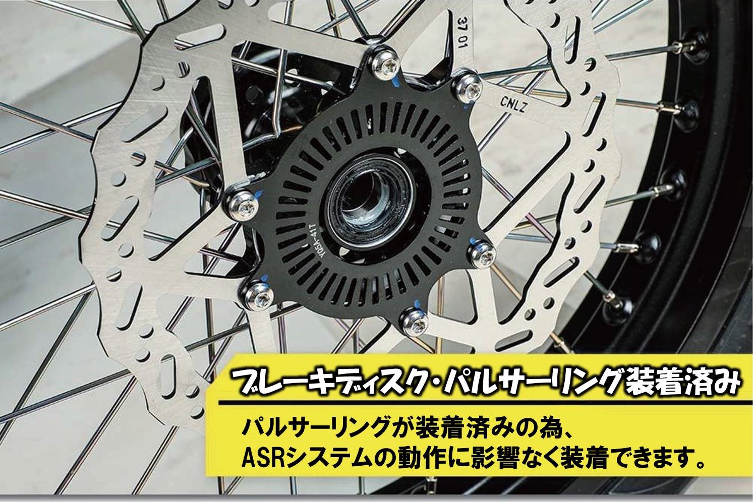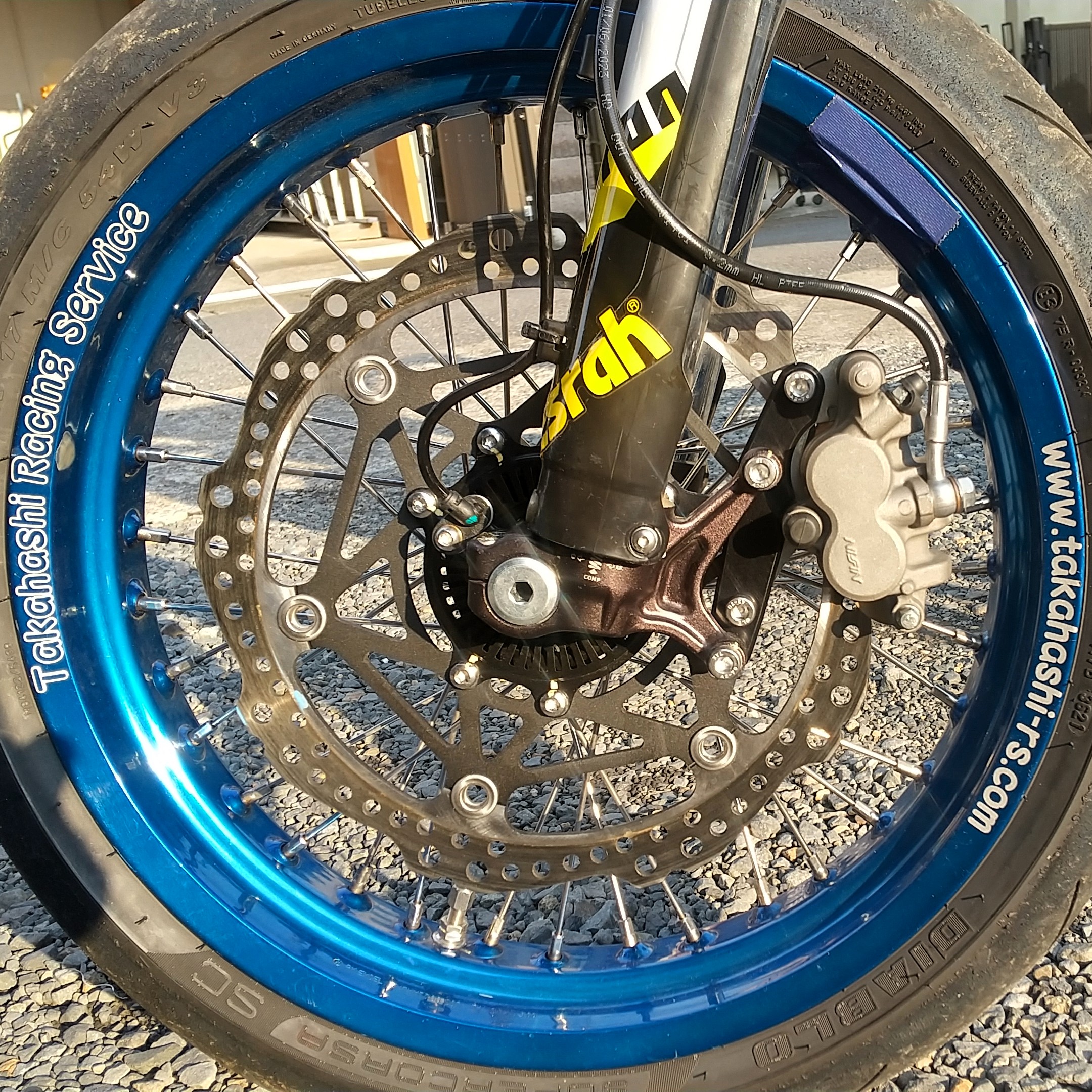 当店でも前後17インチホイール、リア16インチホイールの製作実績があり、当店デモ車は17インチスーパーモト仕様をテストしております。